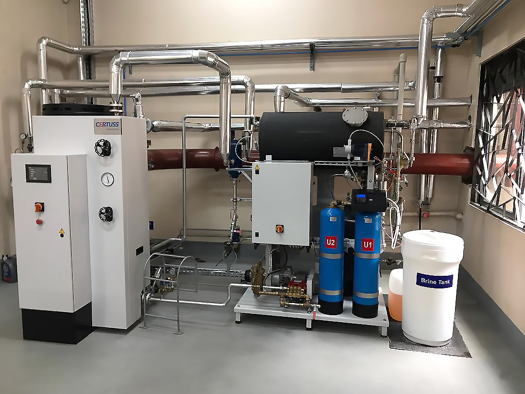 The newly acquired equipment from Europe and the US is operated centrally with steam and compressed air. The JUNIOR steam generator supplied by CERTUSS, with a steam output of up to 350 kg/h, provides enough capacity to supply additional consumers in case of future expansion.